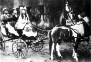1920年,卓别林和范朋克、毕克馥在拍片的间隙坐马车游玩。