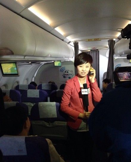 大家好,我是国航小编,很开心和大家在空中打招呼!画面中的央视记者正在用我们特制的wifi网络电话和地面进行通话ing!高端大气上档次啊有木有?!不过也要提醒大家,高空不可使用自己手机噢!