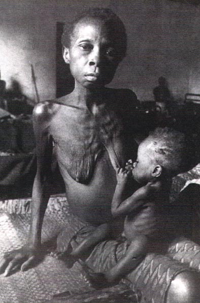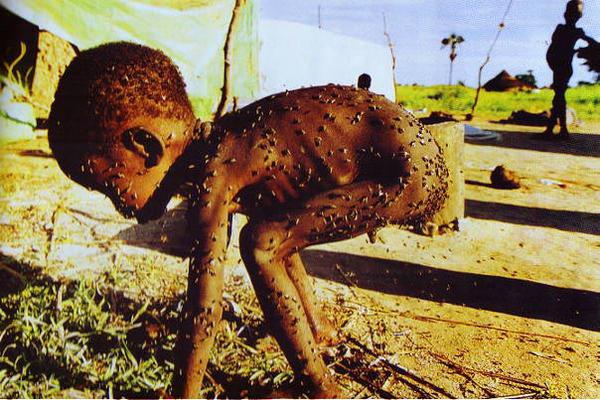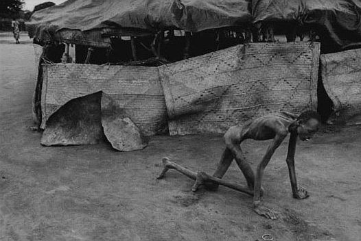 国际人道救援机构在苏丹境内建立了“苏丹生命线组织”,但还是无法面对这么庞大的饥民群。一个虚弱的站不起来的饥民,爬进一个紧急避难所,他完全是一副活着的骨头架。