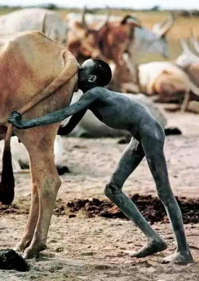 饥饿中等待食物的孩子----因为牛粪比泥饼更营养