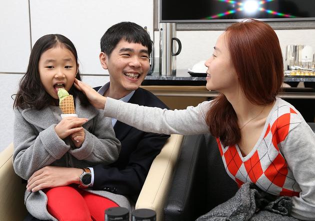 李世石与妻子和女儿在一起