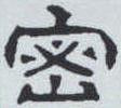 ” 。 《说文》称: “密, 山如堂者。 ”意思是像堂屋样的山。不确。用现在的话说,应是机要密室重如山。小篆除据金文写作“