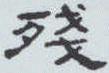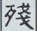 ” , 是两 “戈” 相斗的形状,表示战斗和残杀。此形是 “戔” (读cán,是 “残” 字的初文)。小篆2在“戔”字旁加一 “歹” (读è,是剔去肉的残骨形),强化了残杀的气氛。小篆3在“歹”字旁加一“肉”字,表示骨肉分离的惨状。“肉”字的甲骨文写作“