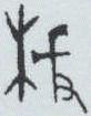 ” 。 一边是树木形, 一边是手持工具或刀或戈或斤(斧)劈砍树枝形, 会意用刀具将树枝(干)砍下一段。 小篆写作 “