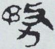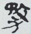 ” 。 右边是 “攴”字; 左边是人头顶上有一“矛” 。 会意顶矛的人是被人拿着器械轰赶着强迫去作战的。与 “敄”相关的是“務” (务)字。秦简、小篆在 “敄”下加一力量的 “力” 。《说文》: “務,趣也。” “趣” 在这里表示迅疾奔走,自然需要用力。以 “敄”为声符的字有“嵍”字,指河北隆尧境内一座不高的山。金文写作“