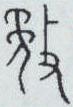 “敄” 是 “务必” (强迫,必须)的本字。《说文》: “敄,疆(强)也。从攴,矛声。”这里讲从“攴”是对的,“攴”有手持器械击人的意思,但“矛声”是不对的。 “矛”仅是对小篆字形的解释。 金文“敄”写作“