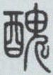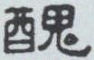 ”,左边是酒坛,右边是头戴面具的人,表达的是古人祭祀时,人戴面具在神和先王灵台前祭酒的情景; 因面具多作神鬼形,自然较人丑陋,故以此形为“醜”。小篆写作“