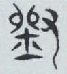 ”, 左边是畱 (留)字,右边是又(手) ,与甲骨文的形义均不符合。小篆除保留了“留” 字外, 将手改为金属的 “金” , 写作 “