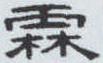 ” 表示大雨点。 甲骨文1象林木上挂满水珠的形状。 金文1-5及石鼓文都是在雨丝中加上三口表示大雨点,大雨的意境油然而生。小篆将甲骨文、金文、石鼓文的不同字形分成 “霖” 和 “霝” 两个字。