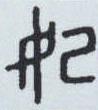 ” 一女的会意字, 表示男女匹配。 另有一 “己、 女” 结构的 “改” (读jǐ),最初只是女人的名字,后取代“子、女” ,见金文3-4。小篆也用两个字表示这个意思: 一、与甲、金文结构相同的 “妀” ,《说文》称“女字也” 。字就是出嫁,如称未嫁是 “待字闺中” ; 二、用 “配” 字省去 “酉” ,仅留“己”作声符,与女组成的 “妃” 。隶书(汉帛书、《礼器碑》等)以特有的波磔笔画改变了古文字的面貌,成为今文。