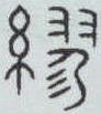 ” ,上边是 “羽” ,表示鸟飞翔,下边是 “糸” (读mì)表示丝、绳,合起来会意鸟欲飞而受丝、绳羁绊。金文、古陶文在甲骨文的基础上加“㐱” (读zhēn,表示毛发)写作“