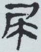 ” , 古玺文、 小篆及汉简字形近似,都是人身后有一倒垂的 “毛” 形。反映了古人祭祀时用动物毛、羽装饰的习俗。一说是给奴隶装的标志。也是造字者惟恐用某一动物的形状不足表示 “尾” 义的苦心。隶书(汉《石门颂》 )虽以波磔之笔画将其拉入今文行列,但基本结构未变。