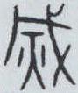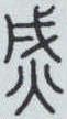 ” 。上边是表示斧钺形兵器的“戌” (也是地支的第十一位) ; 下边是 “火” 。合起来应是用兵器扑灭大火。或是指战火毁灭生物,反映了战场上的某段情节。