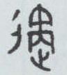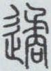 ” 。虽字形略异,但基本字素均由表示行走、走动义的 “辵” (读chuò,由表示街口或行走义的 “彳” 及表示足、脚的 “止” 组成,即今文中的 “辶” )和“矞”组成。因 “矞”有刺义,故除用作读音外,也有躲避义。小篆随金文结构写作 “
