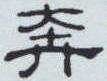 ”区别于“走” ; 后小篆将“三止”组成 “贲” 字省去 “贝” ,用作声符。使其成为 “从大, 贲省声的形声字。金文或加表示行走的符号“