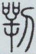 ” , 上边是表示切刻的“㓞” , 下边是声符“各” , 与“㓞”组合成“从㓞, 各声” 的形声字。 小篆写作“