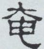 ” ,上边是闪电形,下边是人形,会意闪电临空,罩于人顶,自有覆盖天下的感觉。小篆为了字形结构的安排,将闪电置于人的足下,形义全失,但为隶书楷化奠定了基础。为表示掩盖,用手捂等义,小篆另加“