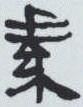 ” , 成为“垂丝”结构(上边是“垂”字, 下边是“糸”字,“糸”读mì,是丝的字根)。隶书将“垂”省成三横一竖,从此成为今文。