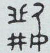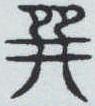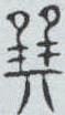 ” ( “” )字, 读zhuān, 象两个跪姿的人形。是金文5、古玺文和小篆 “巽” 的初文。