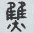 ” , 前者延续了甲、 金文的结构, 后者用 “雥”(读zá, 群鸟)表示森林起火, 火烧鸟群。 隶书(汉帛书等)写作 “