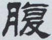 ” , 人是形符,复是声符,金文虽未刻意表现人的肚腹,但将复字置于人的怀抱中,既是形声,也可会意腹是指人的胸下腿上部位。《侯马盟书》首先使用“肉”旁表示腹属人肉体的一部分,为小篆从肉(月),从复奠定了字形基础。
