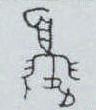 ” , 下边有一呈箭头的小 “虫” 形, 上边主体字形是一有首、肩、臂、肢干和足(止)的活跃人形,因此可以理解为因某种虫的原因使人早起劳作。至于是什么虫可以影响人的行为,因今人已无古人的当时的生活环境,实难作翔实推理。此字后也作姓氏 “晁” 。