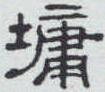 ” , 是城墙两端有亭楼建筑形, 将台阶化作小屋窗形,大屋外加一环墙,显示了 “墉” 的初形,《三体石经》保留了甲骨文基本特征, 小篆写作“