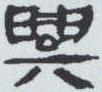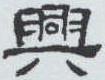 “兴” 是(共同)起来。《说文》 : “兴,起也。从舁,从同。同力也。” 完整地道出了 “兴” 的本义。甲骨文、金文虽字形略异,但均象两手或四手共同抬举物体的形状。其中加 “口” 者,当是一人喊口令众人齐用力的会意。又与《侯马盟书》 、小篆等将被举物体和 “口” 组成 “同”字,对应了共同抬举的同义。隶书( 《乙瑛碑》 、汉帛书)以平直的笔画改造了古文字形,从象形字的窠臼中分离出来。