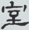 “室”字本义为内室(前屋称“堂” ,后屋称“室” ,故有 “穿堂入室”语)。引申为家。《说文》: “室,实也。从宀,从至。至,所止也。”意思是说,屋室是让人感觉踏实的地方。甲骨文、金文、小篆虽字形略异,但字素相同。上边都是 “宀” (读mián,房屋的外轮廓,表示屋室) ,下边都是“矢” (箭)前一横,用箭落地表示到、止,会意人到此就止步休息了。隶书(汉《曹全碑》 )虽进入今文行列,但字形结构未变。