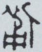 ” 。 象在有档格的架子上放着箭矢。此时与表示箭函的 “箙” 是同一字。金文写作“
