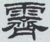 ”上边是雨, 下边是手抓一女人形, 即“妻”字(参看“妻”字释文)。小篆将此字化为 “霋、 霁”两个字, 分别写作 “
