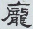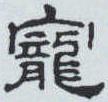 、”(宀,读mián),已是标准的房屋宫室形。“龙”形基本保持了甲骨文的形状。其中一字将“龙”头变成小儿头,且加一“玉”字。小儿和玉都是古人最宝贵者(详见“宝”释),由此使“宠”字增加了宠爱意。此时的“宠”属会意字。秦小篆随着字形的规范化,将象形的“龙”确定为“龍”,将从“宀”和从“广”的分成“宠、庞”两个字。“庞”则专指高大的房屋,转指人面、脸庞。隶书(汉《樊敏碑》等)随之写作“