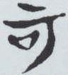“可”是表示允许,能够。《说文》: “可,肯也。从口、丂。丂亦声。(丂读kǎo)” 甲骨文、 金文、 石鼓文及小篆字形近似, 顺序写作 “” 。其中“”是直柄或曲柄锛斧的形状; “口”表示劳动时发出的声音,如劳动号子或助力声。“可”也是“歌” 的初文(歌是劳动号子的延伸)。“歌”字金文是在 “可” 旁加语言的 “言” 。此字也表示大声责斥的“诃” 。小篆分成两个写法, 即 “” (歌)与 “” (謌)。隶书(汉《乙瑛碑》 )写作 “” , 虽已成今文, 但与古文字的结构相同。