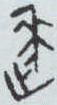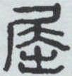 ” 。上边是“尾” , 下边是“出” 。 “尾”是古人挂在股后的装饰或遮蔽物,是以禽兽皮毛裹体的遗风。《说文》: “屈,无尾也。”就是说无遮羞物而露出阴毛,而露出阴毛正是人身体弯屈时的现象。隶书(汉帛书、《夏承碑》 )或省去“毛” , 写作 “