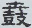 ” (读fēn)。 前者鼓已作 “贝” ,失形; 后者直接写作鼓形,鼓上的饰物变成声符 “卉” 字。与甲骨文相去甚远。“鼖” 则专指 “大鼓” 。《说文》 : “大鼓谓之鼖,八尺而两面,以鼓军事。” 隶书(汉《史晨碑》等)以其平直的笔画写作“