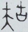 在古文字中有一与 “夫”混用的“㝬”字, 只见于金文, 写作“