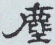 “尘” 是会意字。用群鹿奔跑时扬起尘土来表示灰尘,尘土。《说文》: “(尘)鹿行扬土也。 ” “说文籀文” 和小篆分别写作 “”字形近似。都是用三只 “鹿” 和尘土的 “土” 组成。不同的是小篆的 “土”在群鹿的脚下; “说文籀文” 的 “土” 在群鹿的两侧。且群鹿无腿,表示尘土飞扬不见全身。构思可谓巧妙。也是文字构图的需要。此字未见甲骨文和金文。 构成此字的字素 “群鹿” 和 “土”字, 甲骨文分别用两只鹿 “” 和带尘沙的土块“”来表示。隶书(汉《孔彪碑》 )大胆简化篆书笔画,将三只鹿改为一只; 并将篆书的弧笔圆折改为直笔方折。从此脱离了古文字形而成为今文。今简化字写作 “尘” ,用 “小土” 来会意。十分得体。