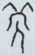 ” 。上边是有牛羊角装饰的帽子,下边是人形。以牛羊角作头饰是古酋长的普遍作法。后期甲骨文、金文、 《三体石经》写作“