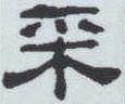 ” 。但“采”字上的“手”未变,仍随甲骨文写法,并成为与 “手” 同义的“爪”字。 “采”字下边的 “木” 字甲骨文也有写作 “