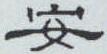 “安”是会意字,意思是安静、安全、安定。《说文》: “安,静也。”古时男人外出狩猎劳累而危险,女人在家相对安全、安静; 男人也安心。甲骨文、金文、“石鼓文” 、小篆均是“女”在 “宀” (读mián,是房屋的外形,作为部首表示房屋)中的形象。女字旁边的小点或竖画是表示人动作的动态线或饰笔。各种书体虽写法不同但基本构成却始终未变。其中金文2~3将 “宀”写作 “厂” (读hǎn,是山岩的凹处形,是上古人类穴居的地方,做为部首也是敞开一面墙的房屋)。 秦小篆2也写作 “
