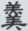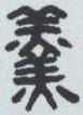 ” , 将食器明确为 “鬲” , 或在左右加两条徐徐上升的动态线,表示煮羹时发出的热气。小篆3-4及秦简将 “鬲” 改为“美” , 表示美食。 隶书也随此结构写作 “