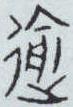 ” , 左上方从“彳” (读chì,表示行走),下方从“止” (代表足) ,“彳” 和 “止”合起来是“辵” (读chuò,表示走,即隶楷所称的 “走之” ) 。右上方是“俞” ,也是义符,甲骨文的 “俞” 字是独木舟在水中行驶(详见“俞”释文)。加“辵” 可会意小舟轻快易超越大船。小篆将此字分为 “逾” 和 “踰”两个字,分别写作 “