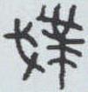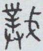 ” 。字形虽不统一, 但均有一表示仆人义的 “菐”字。 另一边金文1、3为“戈” ; 金文2为“斤” (斧头),都是武器形。既可会意由仆人(奴隶)组成的武装,用作对外作战,也可表示用武器击打仆人(奴隶)。小篆在规范笔画后写作“