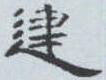 ”看, 由表示行走, 行动义的 “辵” (读chuò )和表示以手执笔作书写状的“聿”组成。“聿”也是法律的“律”的初文。由此可知 “建”是建立法律而行动(实施)之。 金文3写作 “