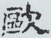 ” , 张口的人形已不如古玺文象形, 左边是声符 “区” (这里读ōu)。都是“从欠,区声” 的形声字。有汉语字典称: “欧的本义指讴歌” ,恐欠妥。 小篆“讴”字写作 “