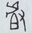 ”者, 此字作“𠭯” (读zhā) , 如与 “虘” 义结合起来, 可理解为(割)取 “虎鞭” 。此举猛虎必然暴怒。 对本为同一字的“虘”和 “𠭯” , 《说文》称: “虘,虎不柔不信也” , “𠭯, 叉卑也” , 即用手抓卑不可明言处。 小篆分别写作“