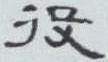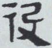 “役” 本指戍守边疆。《说文》 : “役,戍边也。” 商代的甲骨文是一只手执一槌状物在击打一侧身的人形,这说明古时戍边多是被迫和奴役。秦小篆将甲骨文的人形写作 “彳” (是 “行” 字的省文,作为部首表示行走、行动) ,手持槌形写作 “殳” ,殳是古兵器(详见 “殳” 释) ,与 “彳” 字组合成 “役” 字。“说文古文” 的人形与甲骨文相同,只是所持槌形变为横写的 “弓” ,字义不悖。隶书(汉《曹全碑》 )对小篆的笔画删繁就简,拉平取直,跳出象形字的行列。