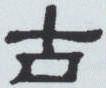 “古”指过去很久的时间和事物。《说文》: “古,故也。从十、口。识前言者也。” 因远古没有文字,过去的事靠口头一代传给一代,所以甲骨文1用“口、中”会意,表示言传口授,甲骨文2用“串、口”会意。金文1将甲骨文的 “中”填实成“