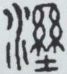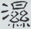 ” 。 左边是水的形状,表示因水而湿; 右边用数横和两束丝表示被水洇湿; 下边或增 “止” ,止是脚,用以表示接触地下。石鼓文将表示地下的 “止” 直写作“土” 。 小篆据此写作 “
