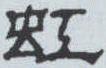 ”。成为“从虫, 工声”的形声字。隶书据此结构以直笔方折写作“